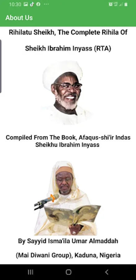 Rihilatu Sheikh Ibrahim Inyass (Tafiyoyin Shehu Ibrahim Inyass R.T.A) The complete Rihila of Sheikh Ibrahim Inyass (R.T.A) Compiled From The Book, Afaqus-shi'ir Indas Sheikhu Ibrahim Inyass, By Sayyadi Isma'ila Umar Almaddah (Mai Diwani Group), Kaduna, Kaduna State, Nigeria.