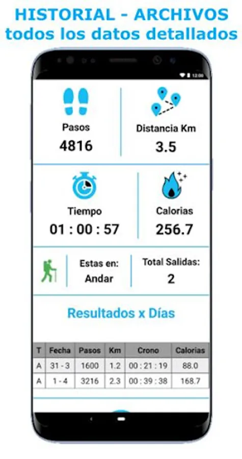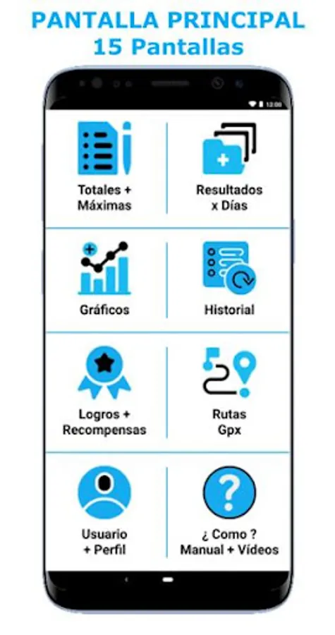 As Data and Screens, Running and Walking offers you: Totals and Maximum Screen, Results detailed by days, great Graphics of all data, a History for saved files, Achievements and Rewards Screen, the User and Profile Screen, system of Administration Messages and a detailed screen of How it Works? + Manual + Videos.