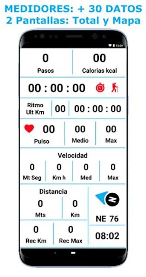 On the Total Vertical Meter Screen you have more than 30 data, you have the Heart Rate meter (Heart Rate Monitor) compatible with all Band + Heart Rate Monitors, of course you have the Step Counter in which you can mark the target or no target , you have a Calorie Counter, Stopwatch, Rhythms of the last Kilometers (Fast kilometer), Speeds x 4 (instantaneous in Mts / Seg, in Km / h, Average and Maximum Speed), in Distances it will mark you in Meters, Kilometers, the Distance that you move away from the starting point and maximum, you have a great Compass, Clock and in Heights you will have the instant Altitude, Start, Maximum, Minimum and all accumulated.