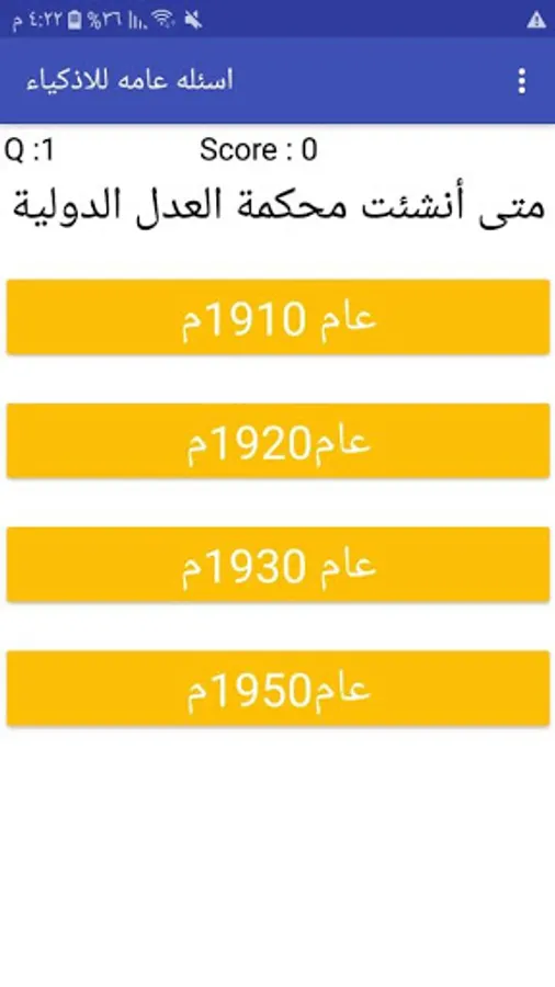 This application consists of 50 questions, between easy questions and difficult questions, and there are 4 options for an answer.