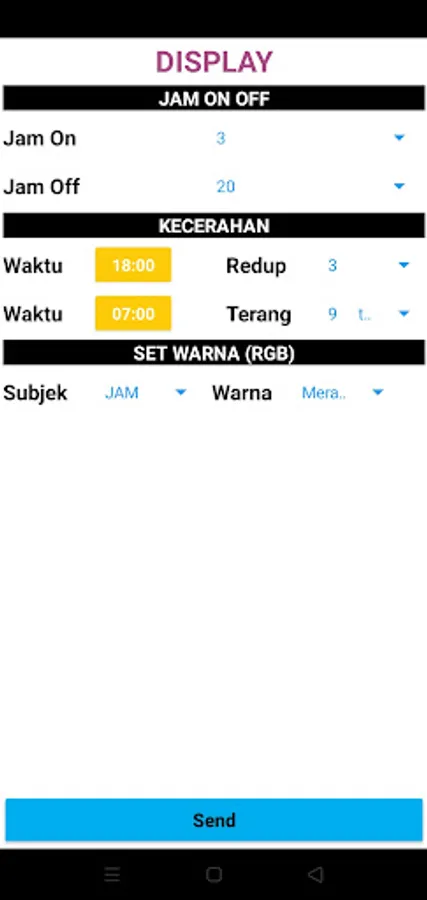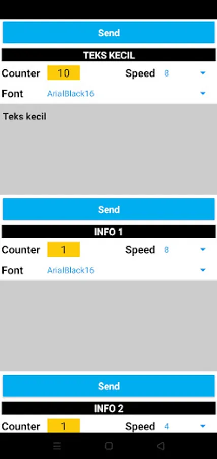 7. Displays Running text / running text: as many as 11 messages, 1 message contains a maximum of 500 characters. And you can set the font type and speed of the running text.