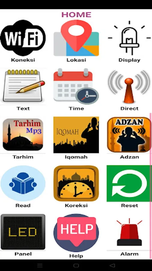 15. set before the prayer time arrives to play certain mp3 files, for example tarhim/mp3 of letters in the Qur'an according to the mp3 file on the sdcard along with the set with the length of time the file was played (in seconds)(tarhim menu)