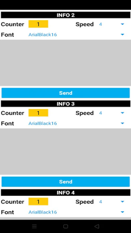 3. Multisize 1 to 20 panels P10 1 row x 1 to 2 rows x 10 panels (or from 36x20cm to 324x36cm) and can be used for LCD displays 16x2 and P5 rgb.
