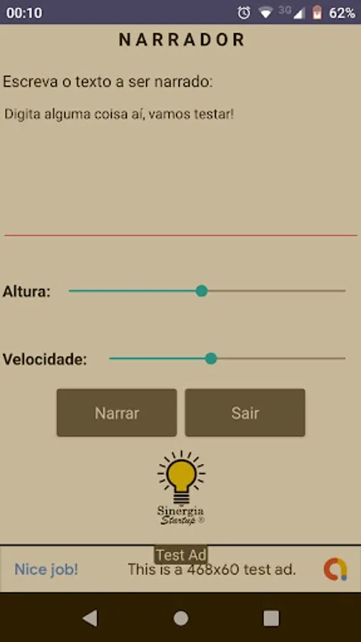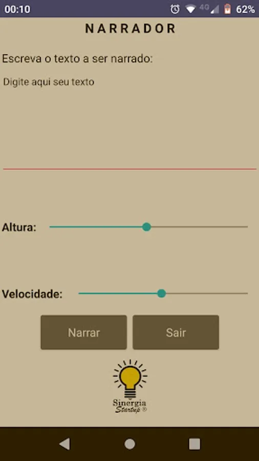 Text-to-speach narrator with height, intonation and speed adjustment.