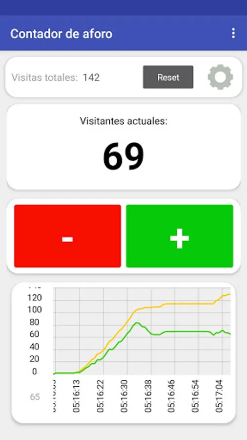 Free, simple and intuitive counter, to keep track of the people who enter a place. At the same time, it provides the data of the current people in the premises and the totals that have entered.