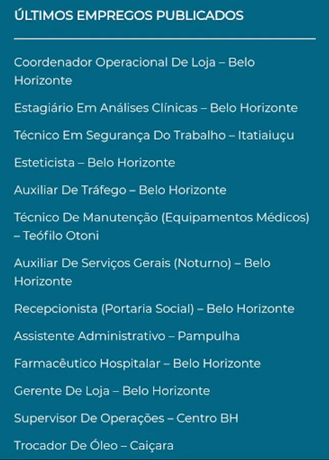 Portal of job vacancies and news related to the entire state of Minas Gerais.