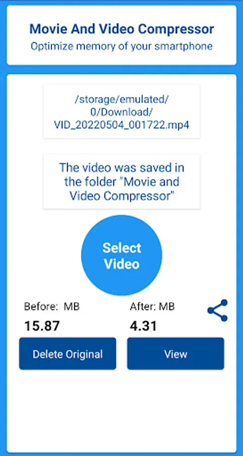 Movie and Video Compressor is the fastest way to compress and reduce the byte weight of your videos.