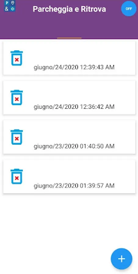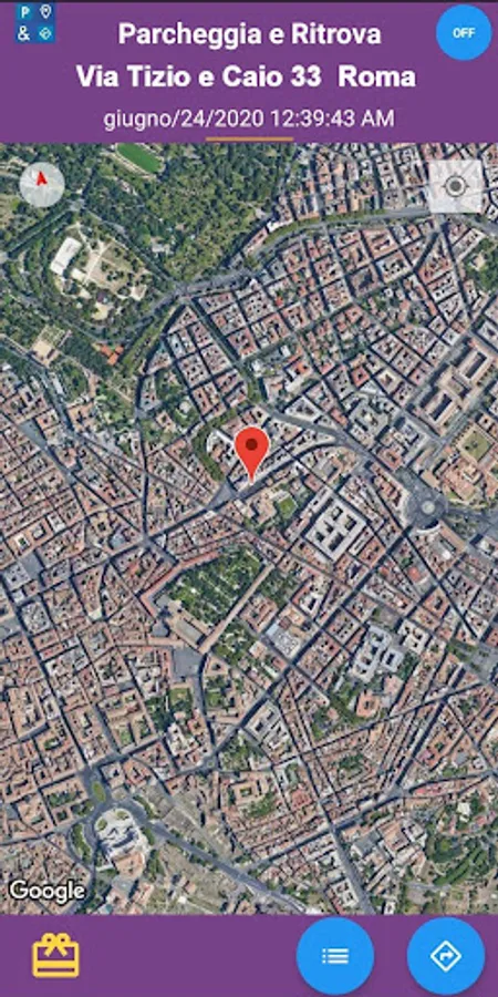 The app saves each parking position, in order to have a memory of past parking spaces.