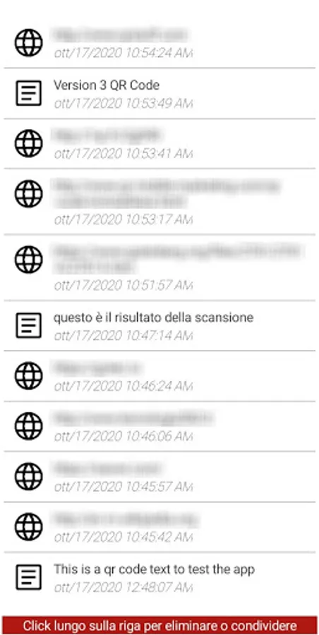 All scans will be saved on your mobile and visible in a list sorted by date.