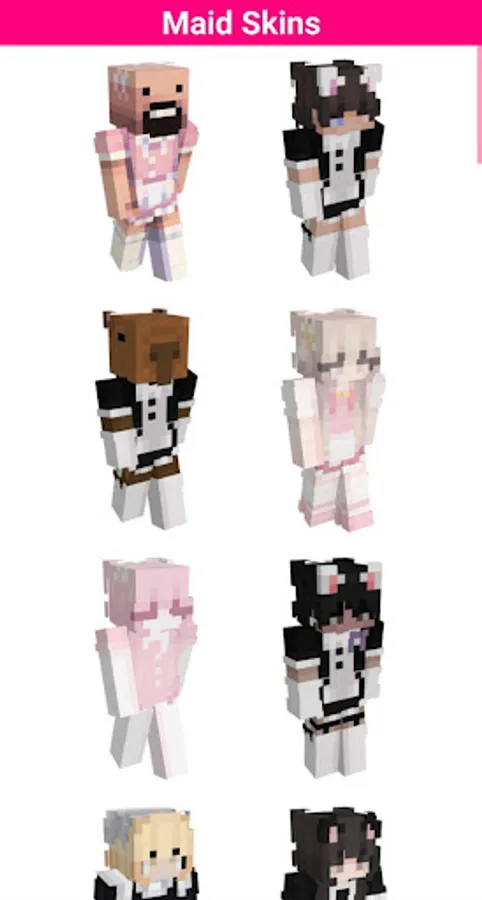 With these top Maid Skins For Minecraft pe you are the envy of everyone on the server. Show off your personality by wearing the coolest and cutest skins on your multiplayer server!