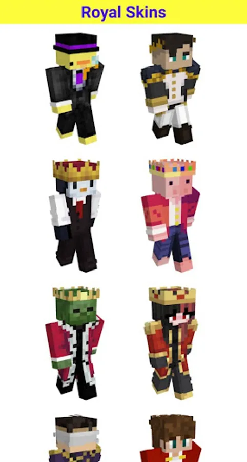 With these top Royal Skins For Minecraft pe you are the envy of everyone on the server. Show off your personality by wearing the coolest and cutest skins on your multiplayer server!