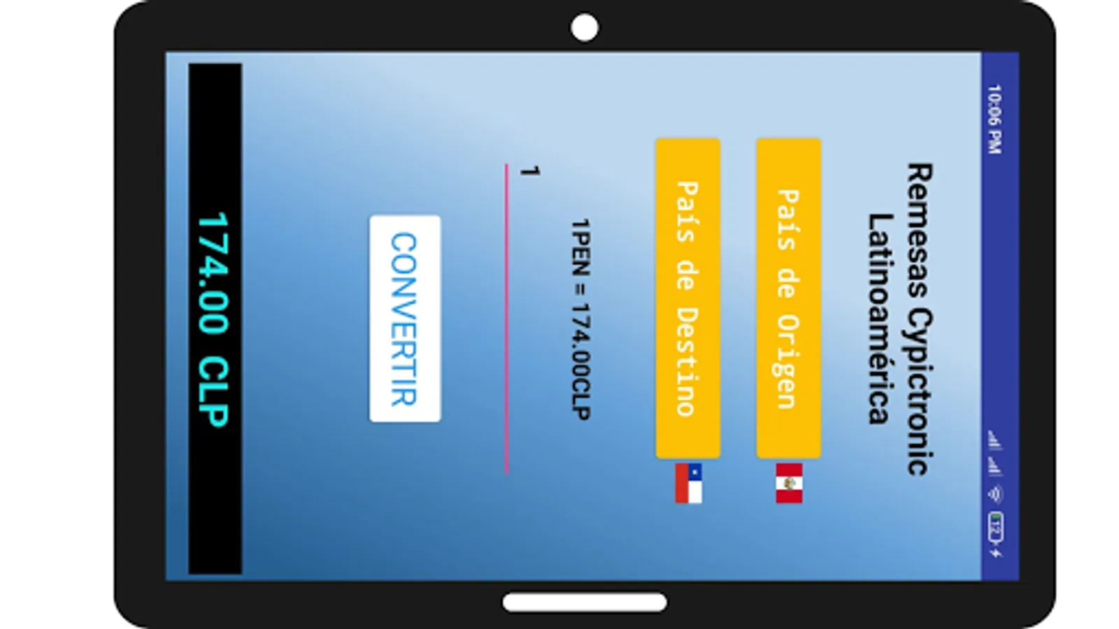 We present one of the Remittances created by a small group of Venezuelan entrepreneurs residing in Peru; with the intention of sending money to Venezuela between 10 to 45 minutes from where you are, quickly and safely. We managed to expand to Chile, Colombia, Ecuador, Argentina and Mexico. Soon Panama.