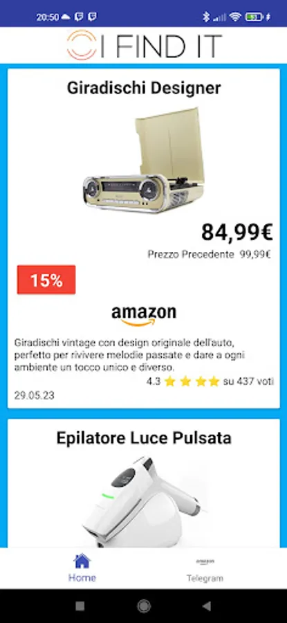"I Fin It" is a state-of-the-art mobile application that offers you an unprecedented shopping experience. We collect and select the best offers and discounts from the main e-commerce, to allow you to save time, money and make your online shopping even more convenient.