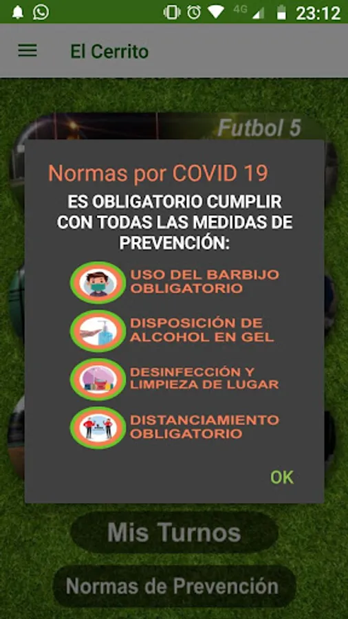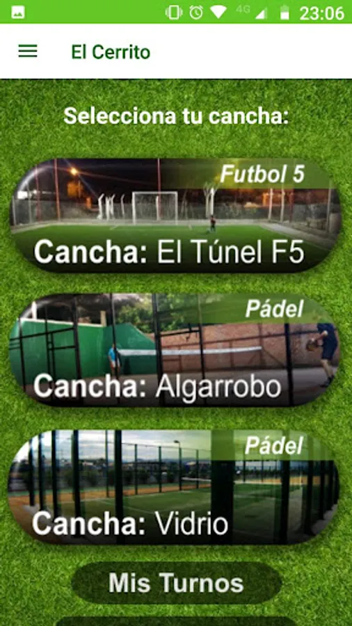 The application consists of reserving turns on line in the different fields of the "El Cerrito" sports complex, this way it will be faster and more comfortable from your cell phone.