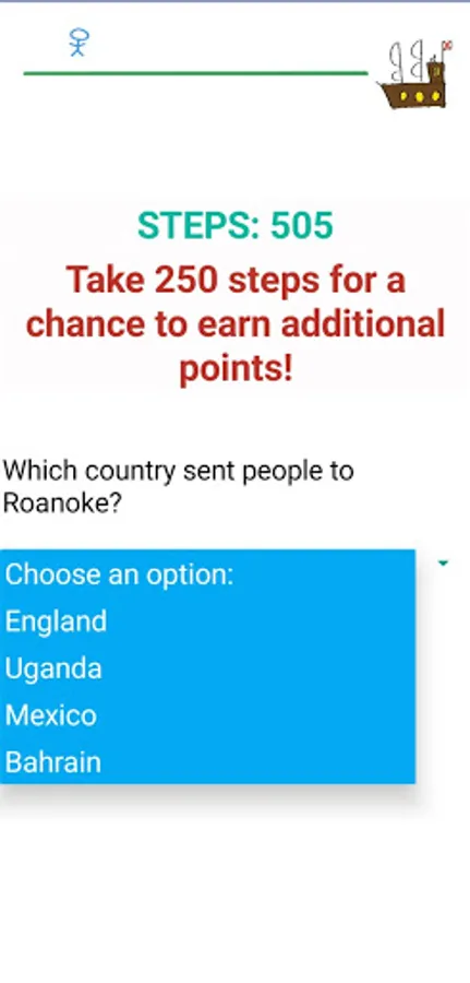 HistARy is a virtual smartphone game that allows a player to exercise, learn about history, and have fun! This is an app that children, mainly ages 9-13, can play. The game uses a pedometer to track the amount of steps the player is taking. In the level, the player will be given the story of the “Lost Colony of Roanoke” to begin with. They will be able to see their character on the screen as the player is walking. The player moves around in their area looking for colonists. The colonists appear after a certain amount of steps are taken. The colonists will give the player a question about the Lost Colony, and the player can answer it to earn some points. After the quiz, the player will come back to the map to find more colonists. Once they complete all the required steps and earn enough points, a new level will open up with a new story and more chances to earn points.