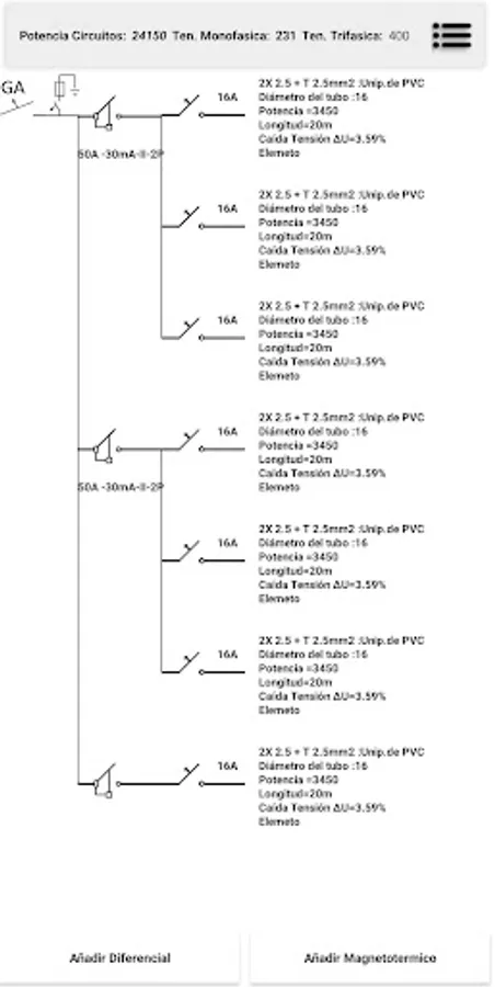 Tool for Electrician, with which you can draw up a One-line diagram, Very good for when you do small works on electrical installations and do not have a computer at that time, it is a good application to carry in your pocket, It is made according to the electrotechnical Regulations for low voltage and ITC, from 2020