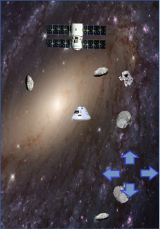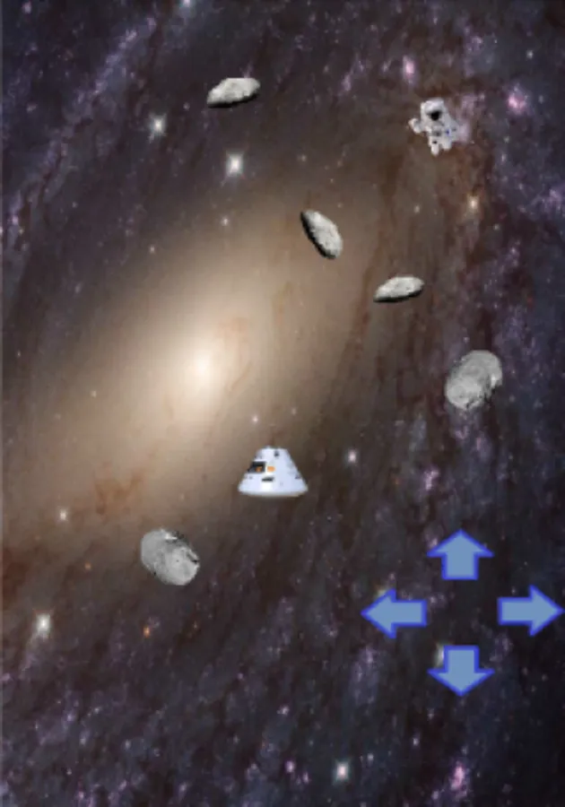 You must fly a space capsule trying to dodge asteroids, rescuing as many astronauts as possible to finally make a successful docking with the space station