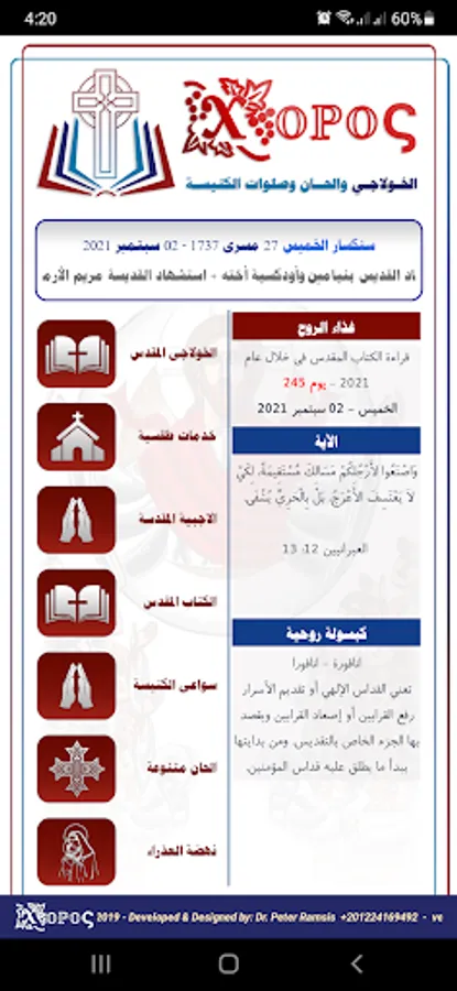 - Contains the daily prayers that are prayed while raising the incense and the liturgy, which facilitates the follow-up of the prayers without moving between programs