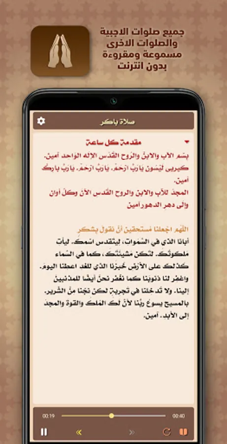 - The ability to move to any part of the prayer while listening (that is, parts of the prayer can be skipped .. The writing changes with the voice when moving.