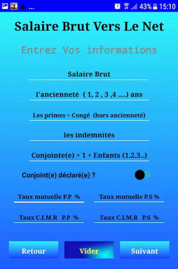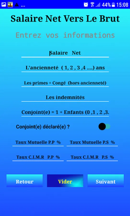 This application allows you to calculate the net salary or the gross salary, as well as the CNSS and AMO and IR in Morocco