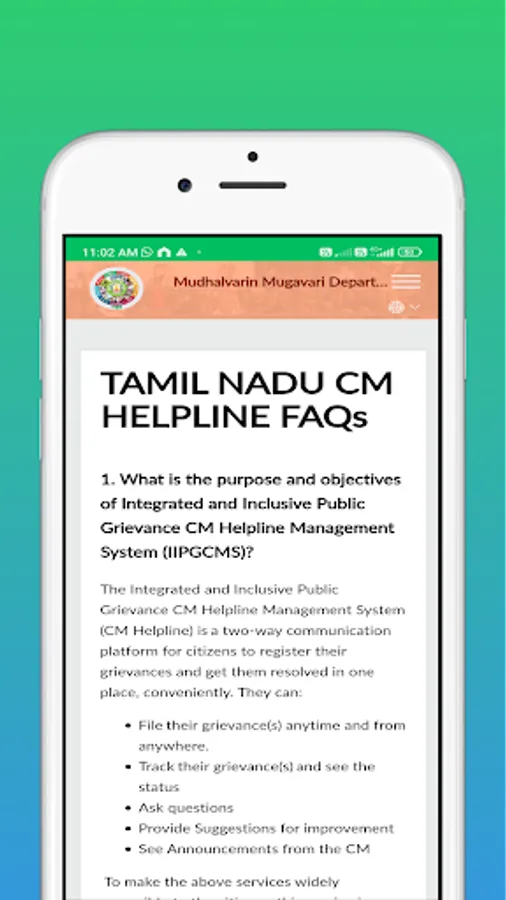✔உங்கள் கேள்விகள், சந்தேகங்கள் எழுப்பலாம் மற்றும், கருத்துக்களை பதிவு செய்யலாம் மற்றும் முதல்வரின் அறிவிப்புகளை தெரிந்து கொள்ளலாம்.