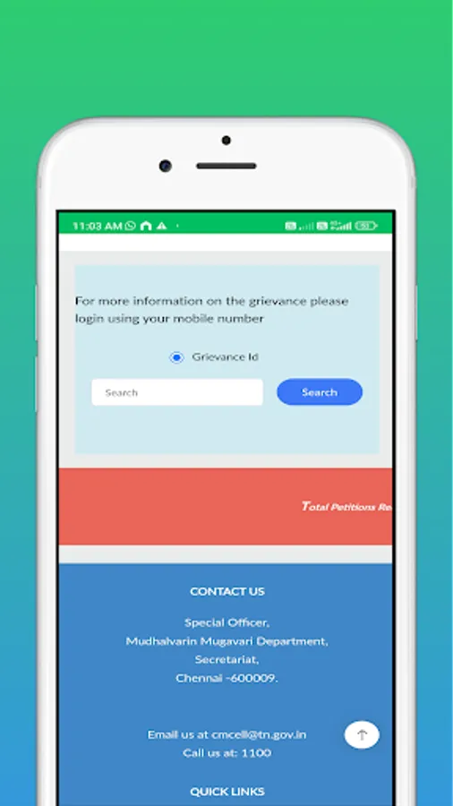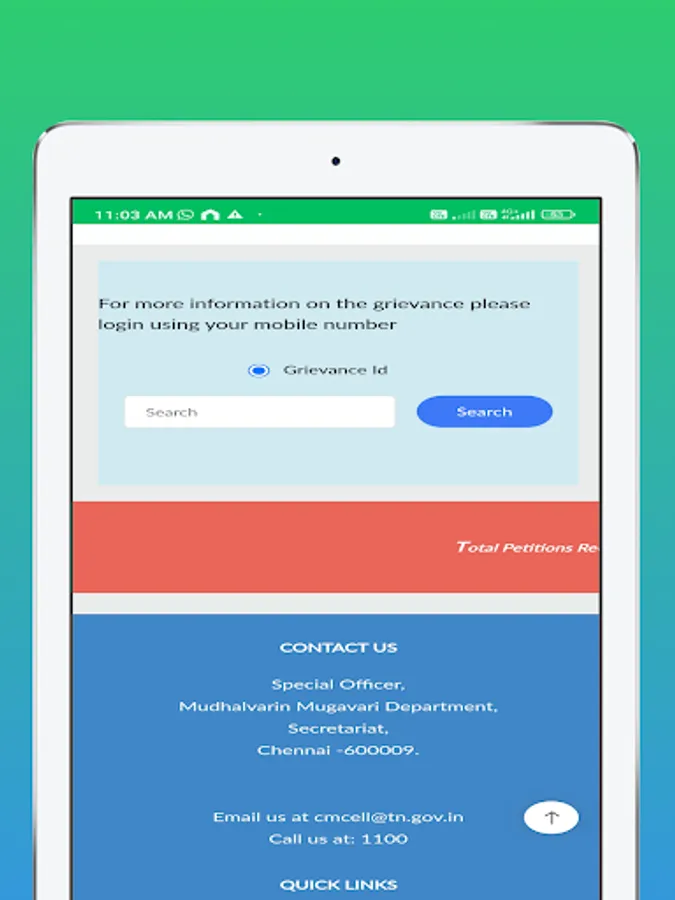 ✔அரசு சேவைகள், திட்டங்கள், அடிப்படை சேவைகள் குறித்து மனுக்கள் மற்றும் புகார்கள் அளித்து அவைகளை கண்காணிக்கலாம்.