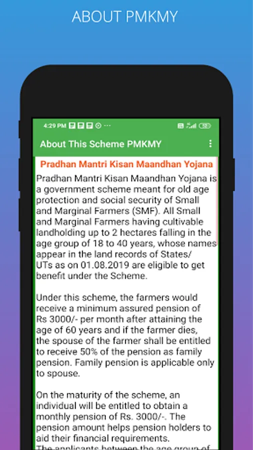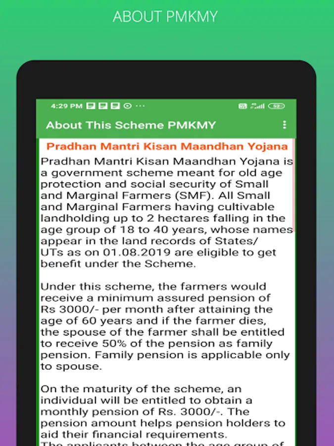 1.This Application is not official we put pm maandhan official site links in the application to help formers we are not responsible for any information