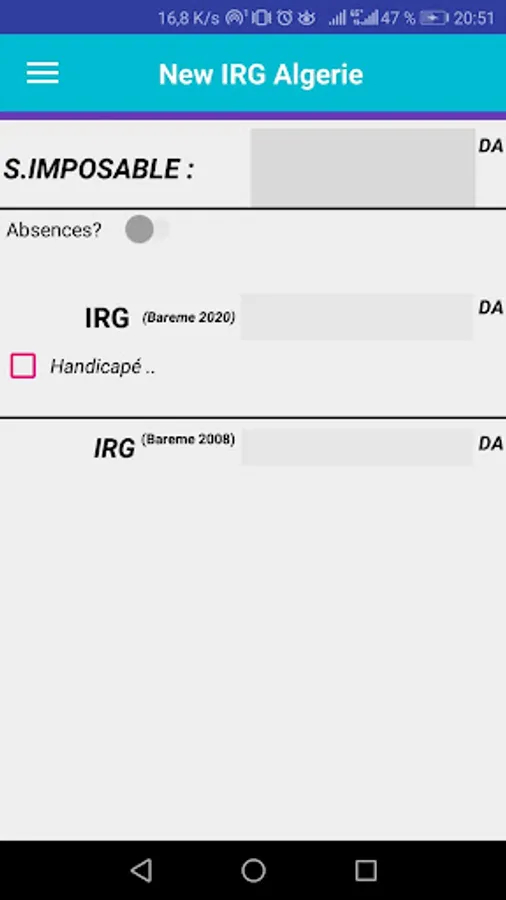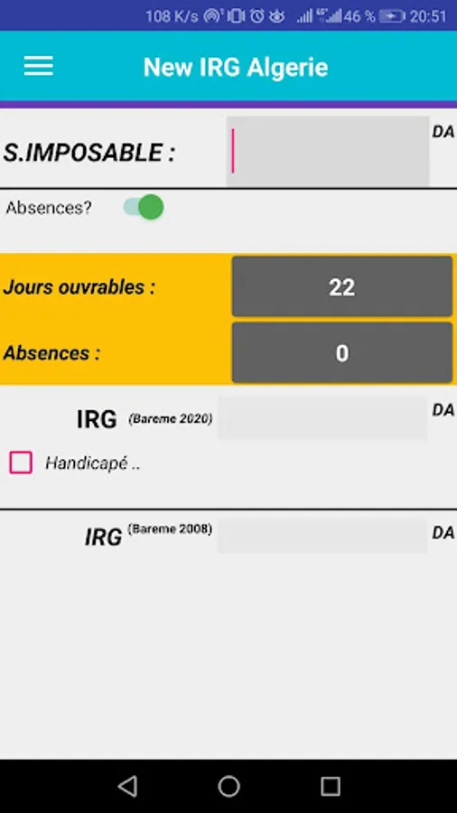 A new application that determines global income tax (WRI salary) according to the 2020 scale and the old 2008 scale