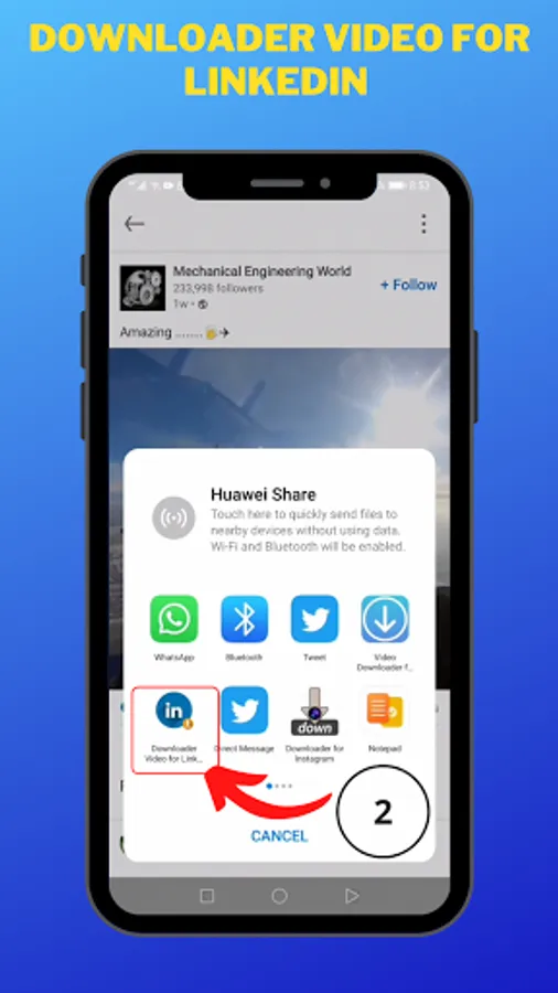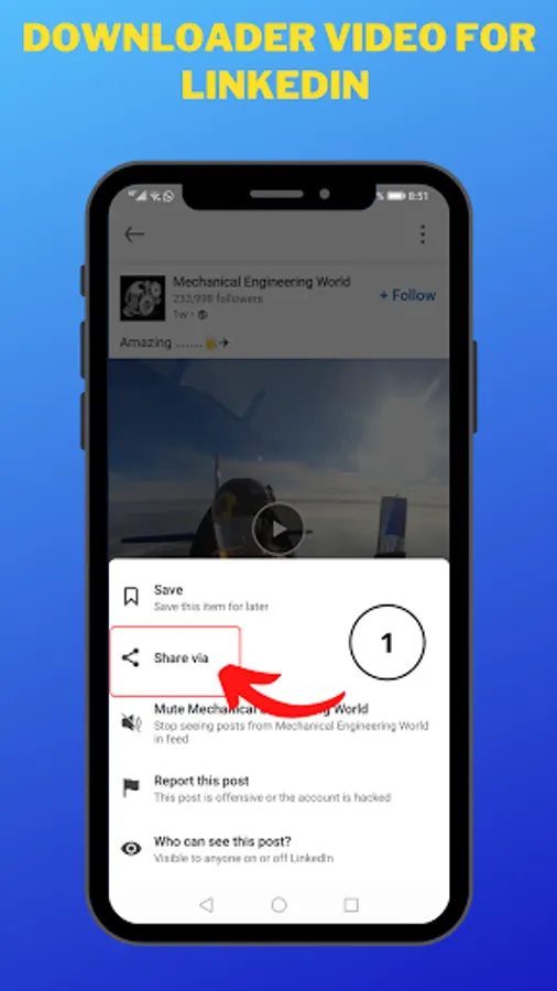 Then, Go to LinkedIn and choose the post that has video. From above click share and share it to downloader video for LinkedIn app.