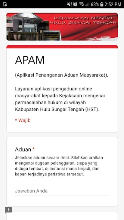 Layanan aplikasi pengaduan online masyarakat kepada Kejaksaan mengenai permasalahan hukum