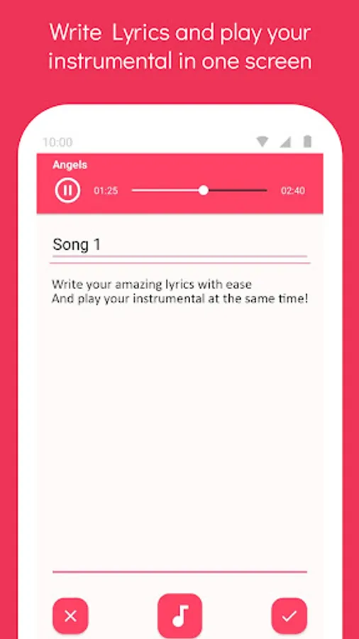 This two in one app lets you play the instrumental of your choice in the same app that you write the lyrics in. Writing lyrics gets tedious if you have to use two different apps or programs, one to play the instrumental and another to actually write lyrics in. With Song Writer - Lyrics you can simply play and control audio on the same screen that you write your lyrics. This way you can properly keep track of melodies and timing of your lyrics.