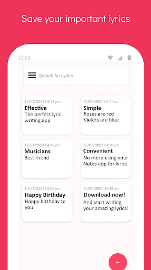 Save your lyrics in one place and stay organized instead of using your notes app. Write great music without worrying about clutter and easily save your great lyrics. As a musician you need a seperate app thats just for your amazing lyrics, and this app is great for saving lyrics as well as writing them alongside your instrumental.