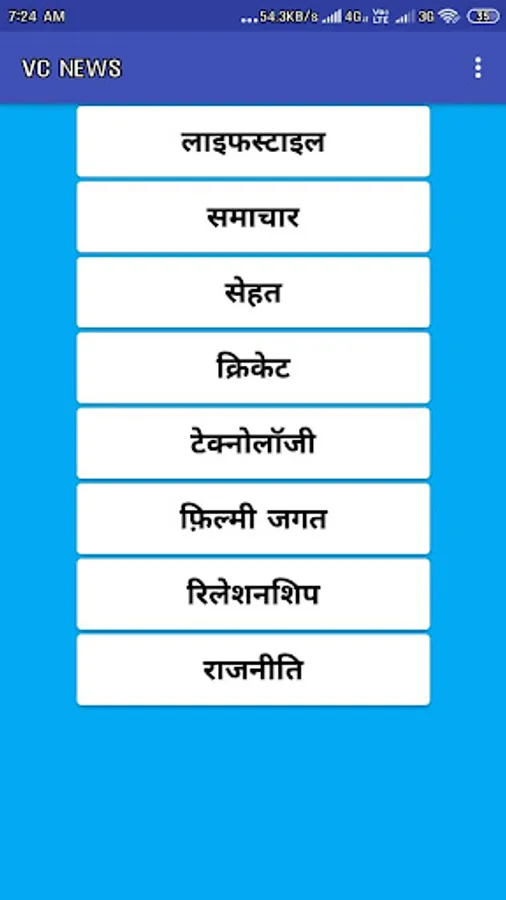 IT IS A NEWS APPLICATION. IN THIS APPLICATION YOU GUYS GET ALL TYPES OF NEWS. LIKE SPORT, LIFE STYLE, BOLLYWOOD NEWS, POLITICS, DAILY HEATH TIPS, PREVENTIONS FROM THE DIESES.