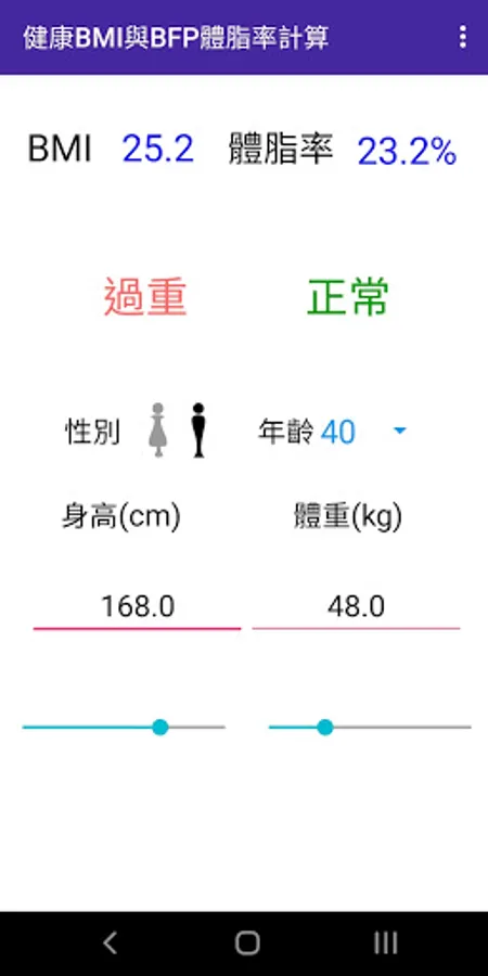 You can use this BMI and BFP body fat percentage calculator to calculate body mass index (BMI) and body fat percentage (Body Fat Persentage) based on gender, age, height and weight to assess your own physical condition .