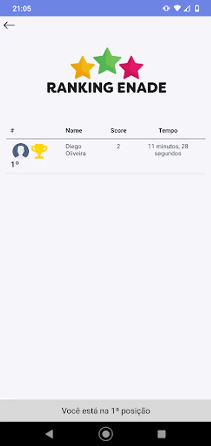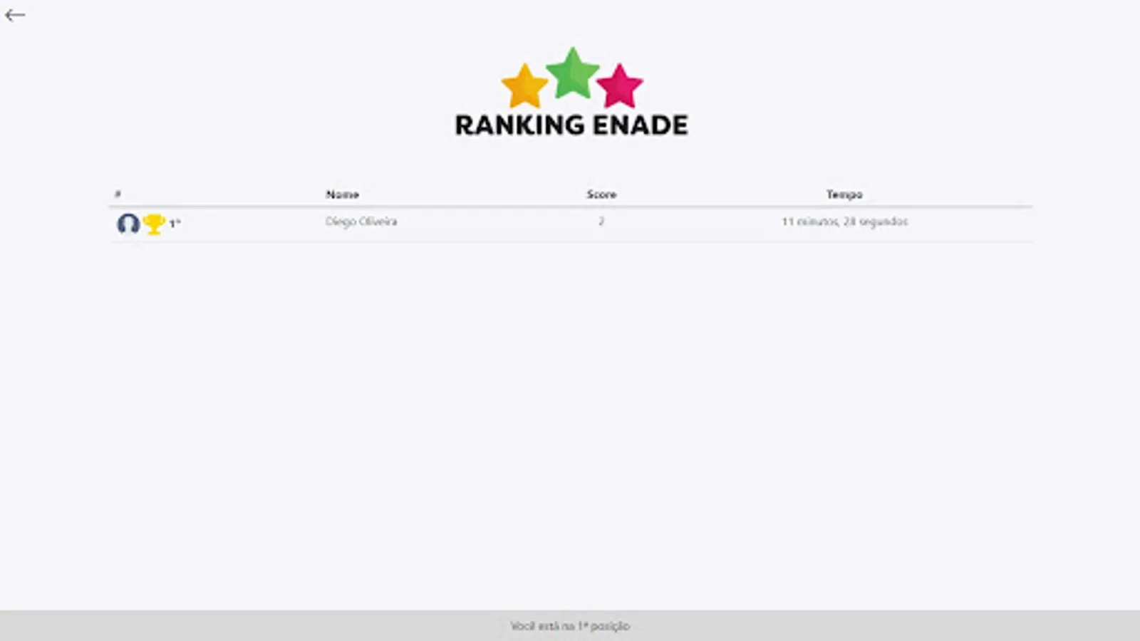 The ENADE Quiz is an ENADE-style quiz game that computes hits and response time per student. At the end, it presents a Ranking according to the score of points and time of use.