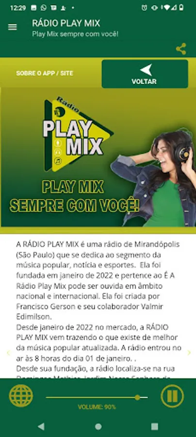RÁDIO PLAY MIX is a radio station from Mirandópolis (São Paulo) dedicated to popular music, news and sports. It was founded in January 2022 and belongs to É A Rádio Play Mix and can be heard nationally and internationally. It was created by Francisco Gerson and his collaborator Valmir Edimilson.