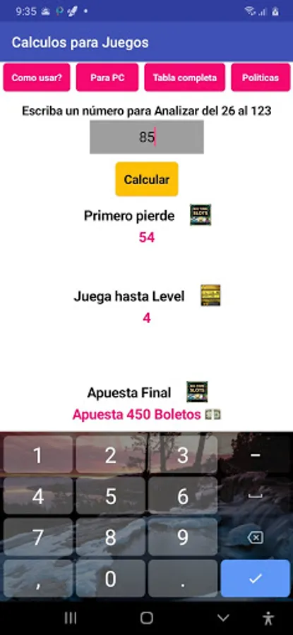 The way to use it is included in the app and we are periodically updating it to improve the calculator tool by adding better plays.