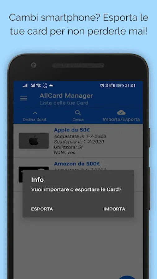 Avoid surprises! Thanks to AllCard Manager you always have the list of cards you have purchased with you and therefore avoid expiring them.