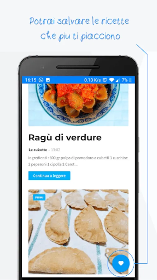 Thanks to this app you have the possibility to save your favorite recipes to be redone whenever you want!
