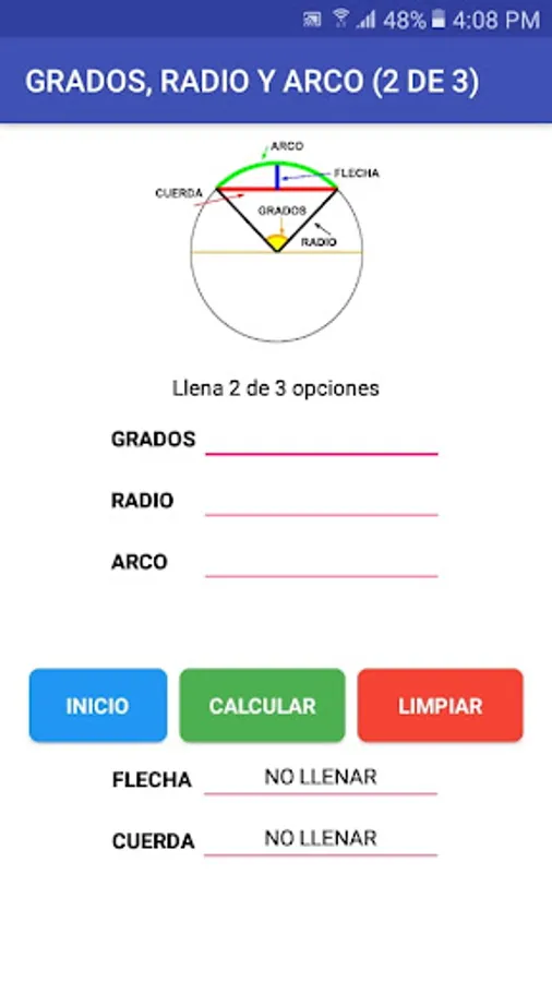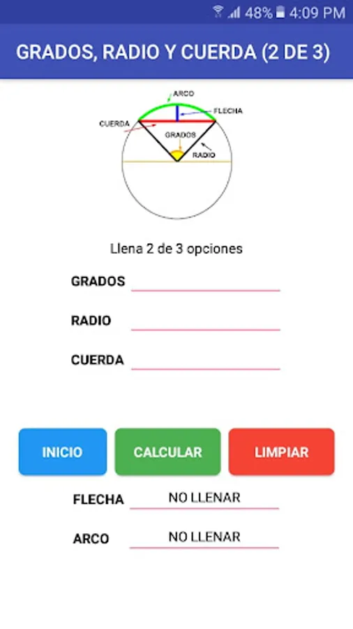 Calculate the bow, arrow and string inside the circle having different options to do it.
