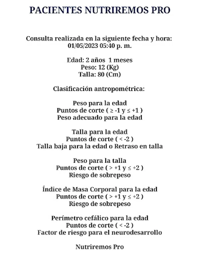 After carrying out a nutritional consultation with our "Nutriremos Pro" tool, each patient can view their diagnosis with our "Patients Nutriremos Pro" application, if the report is sent by the Nutritionist.