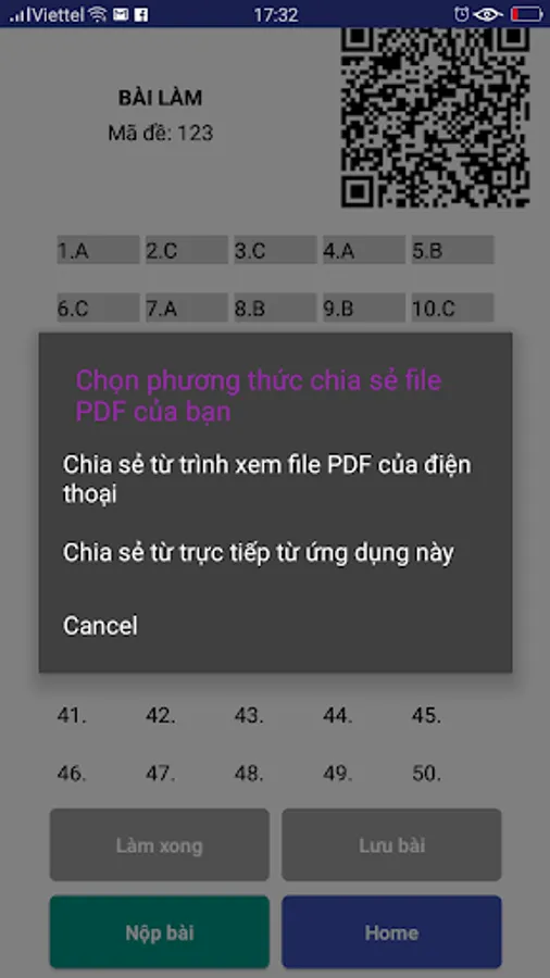 3. Teachers receive the PDF file of the students' multiple-choice tests, just scan the QR code on it to quickly grade the test