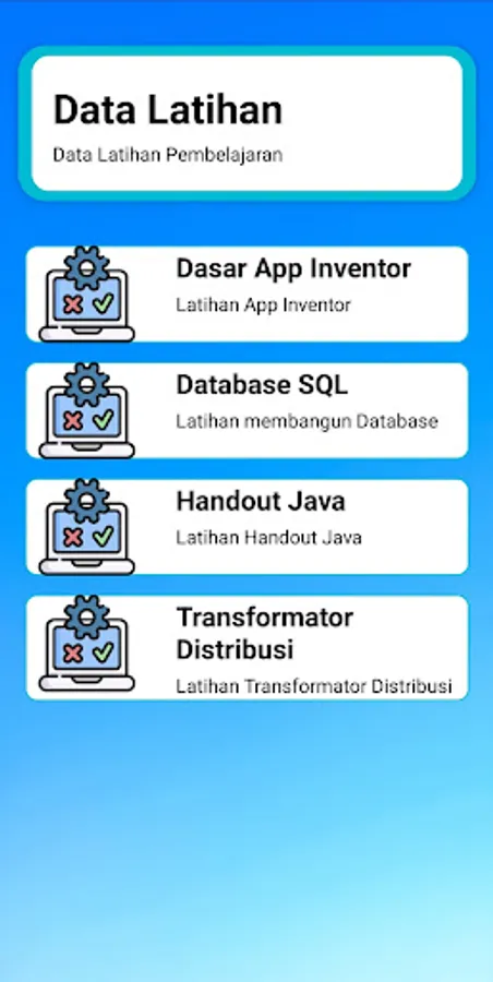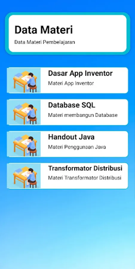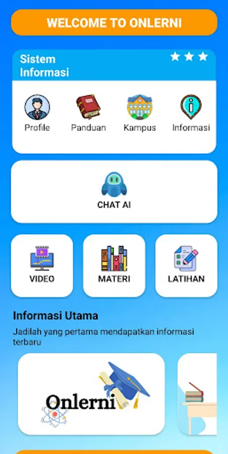 This application presents online learning through applications. This application has several features such as Learning Materials, Learning Videos, and Learning Exercises. This application also supports ChatGPT which you can use.