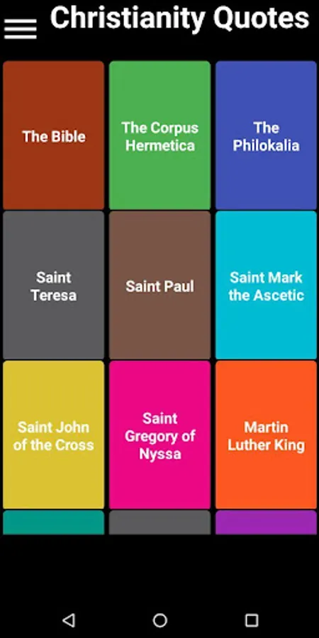 This app contains quotes of the Bible and various christian saints like Saint Teresa, Saint Paul, Saint Mark, Saint John, Saint Gergory, Martin Luther King, Saint Symeon etc . APp is well designed and intended to provide true teachings of christianity