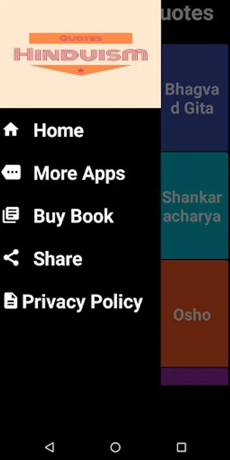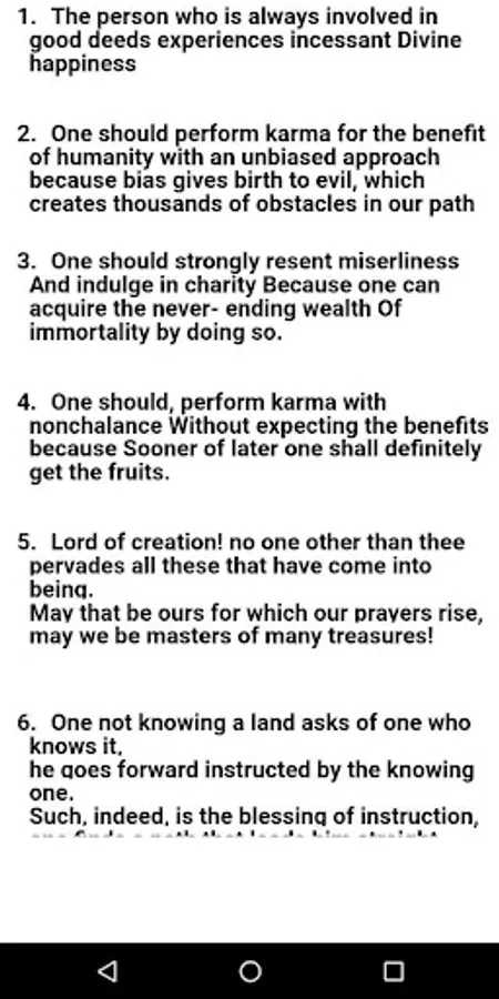 This app contains quotes of various Hindu scriptures and sages. It contains hymns of Rig Veda and Atharva veda. ALong with that quotes of Hindu Saints like Shankaracharya, Osho, Vivekananda, Ramakrishna, Sai Baba etc have also been included. Upanishada Quotes are the main attraction of this app.