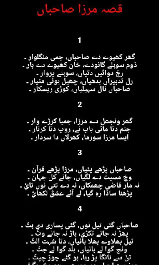 This app contains love story of Mirza Sahiba in Punjabi . Mirza Sahiba written by Peelu is considered as masterpiece of Punjabi literature along with Heer of Waris Shah, Sassi Punnu of Hashim Shah and Sohni Mahiwal .