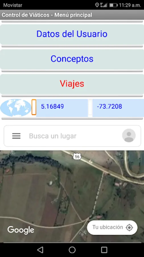 This program allows you to create each new trip and apply each and every one of the expenses you incur to, at the end, settle the travel expenses that will be requested from the company to be reimbursed or to return any advance that has been made. You can also find the exact location, on the main screen there is a world where you can click the program to find your location.