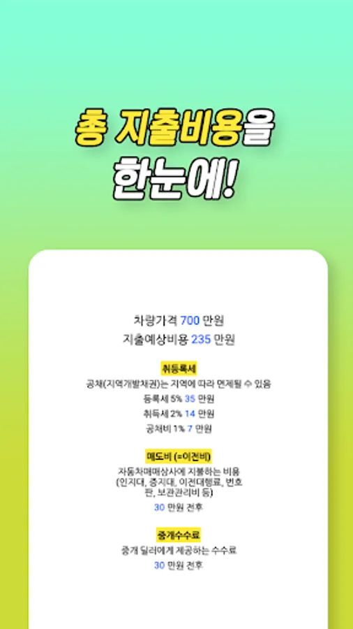중고차 계산기 - 구입전 매매금액 딜러 수수료 한눈에 Screenshots