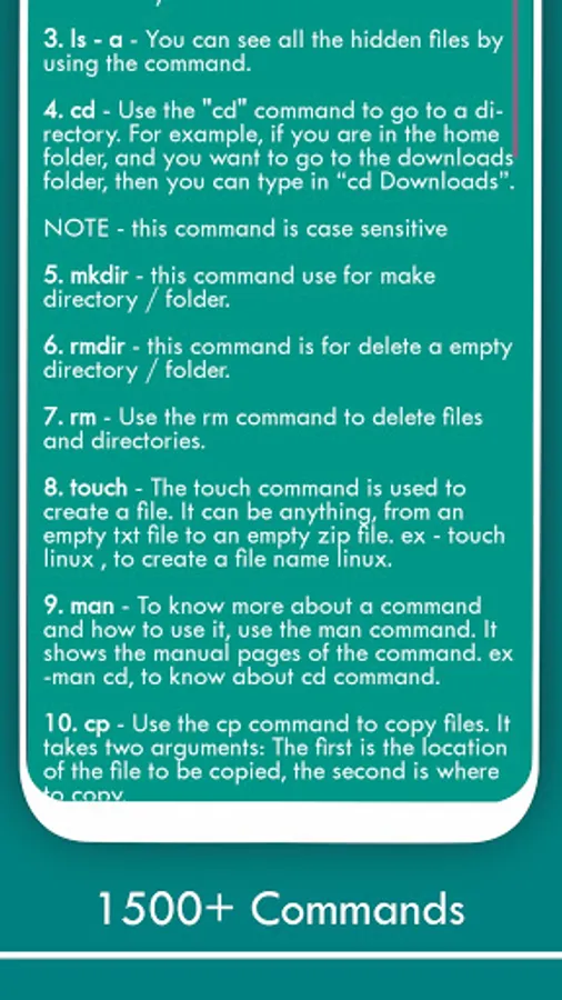 Linux Command Library contains basic useful commands of Rhel and Kali in a well-arranged manner So that a beginner can easily learn these commands. The main difference between this app and others is that this app contains a simple and basic layout and design. The best thing about this application is that you can use it for free and also you can use it offline.