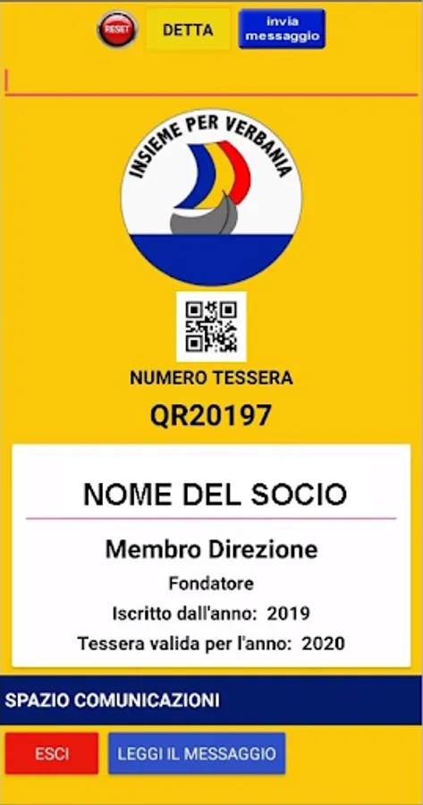 This application is the app version of the association card Together for Verbania, allows, in addition to guaranteeing the recognition of the member, also to send and receive messages interacting with the direction of the Association.